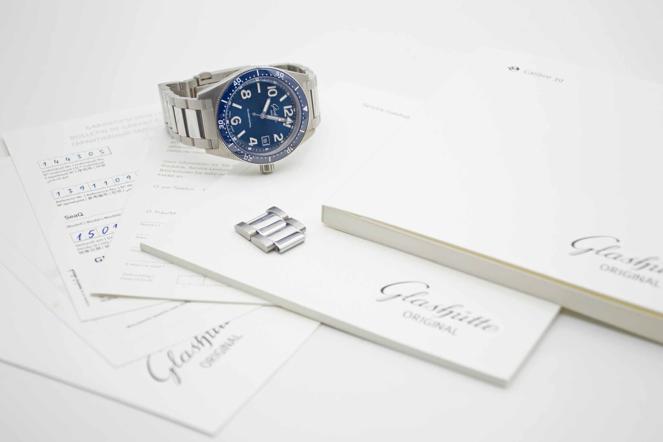 SeaQ 1-39-11-09-81-70, 39,5 mm Gehäuse mit blauer Keramik Lünette, blauem Zifferblatt und GO Edelstahlarmband. Sehr flacher und komfortabler Diver in brauner Glashütte Original Box mit beiden Umkartons (Triple Box Set), SeaQ Anleitung, GO Gangzertifikat, 2 Extra Gliedern, GO Registrierung und Glashütte Orginal Garantie Zertifikat aus 2021 (GO/Dresden). Die Uhr ist komplett neu und ungetragen und stammt aus Sammlerhand. Inzahlungnahmen sind nur direkt im Geschäft möglich. Zu unserer Sicherheit lagern wir sämtliche Uhren unseres Bestandes extern im Banksafe, daher bitten wir um vorherige Terminvereinbarung.