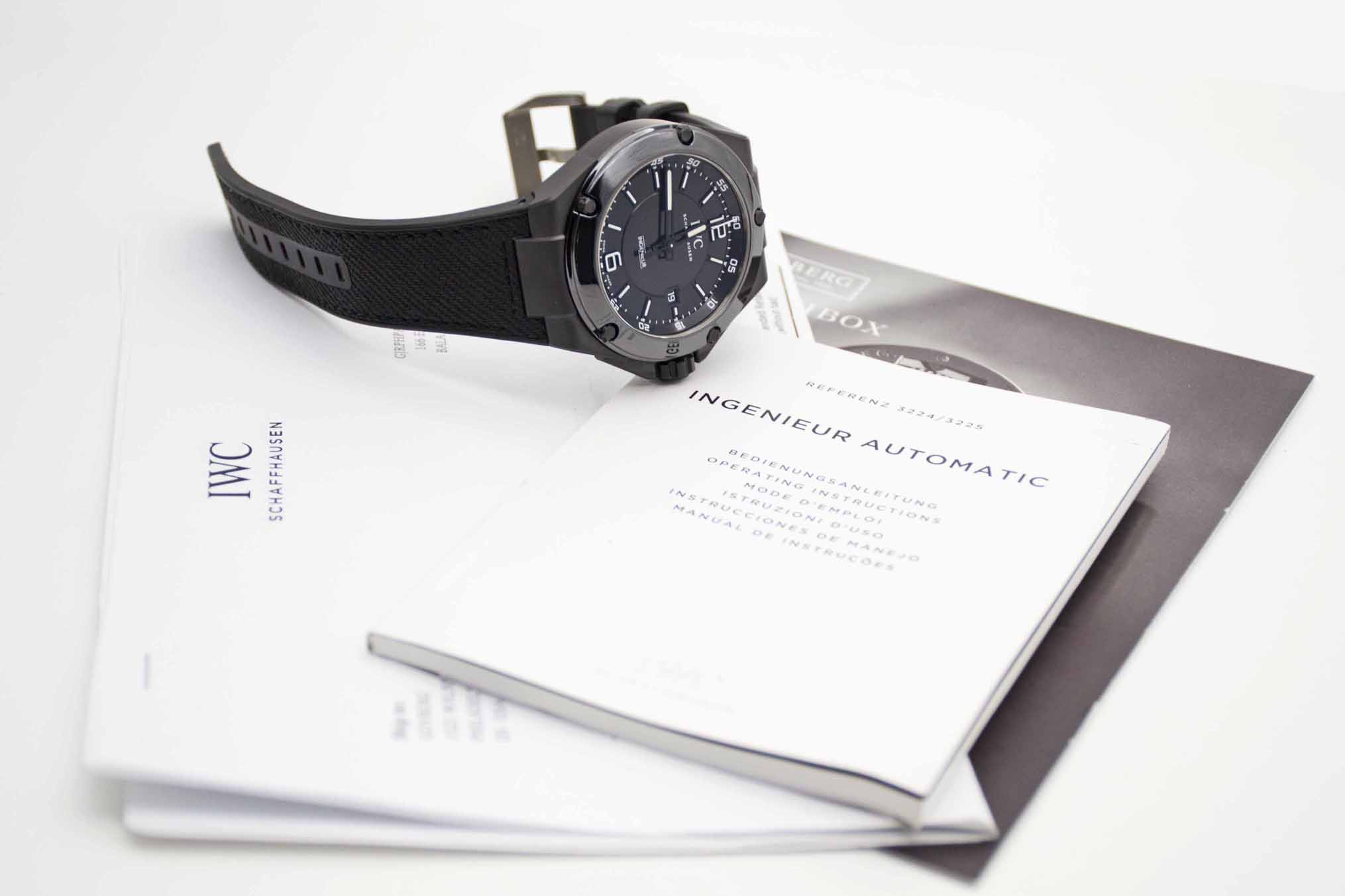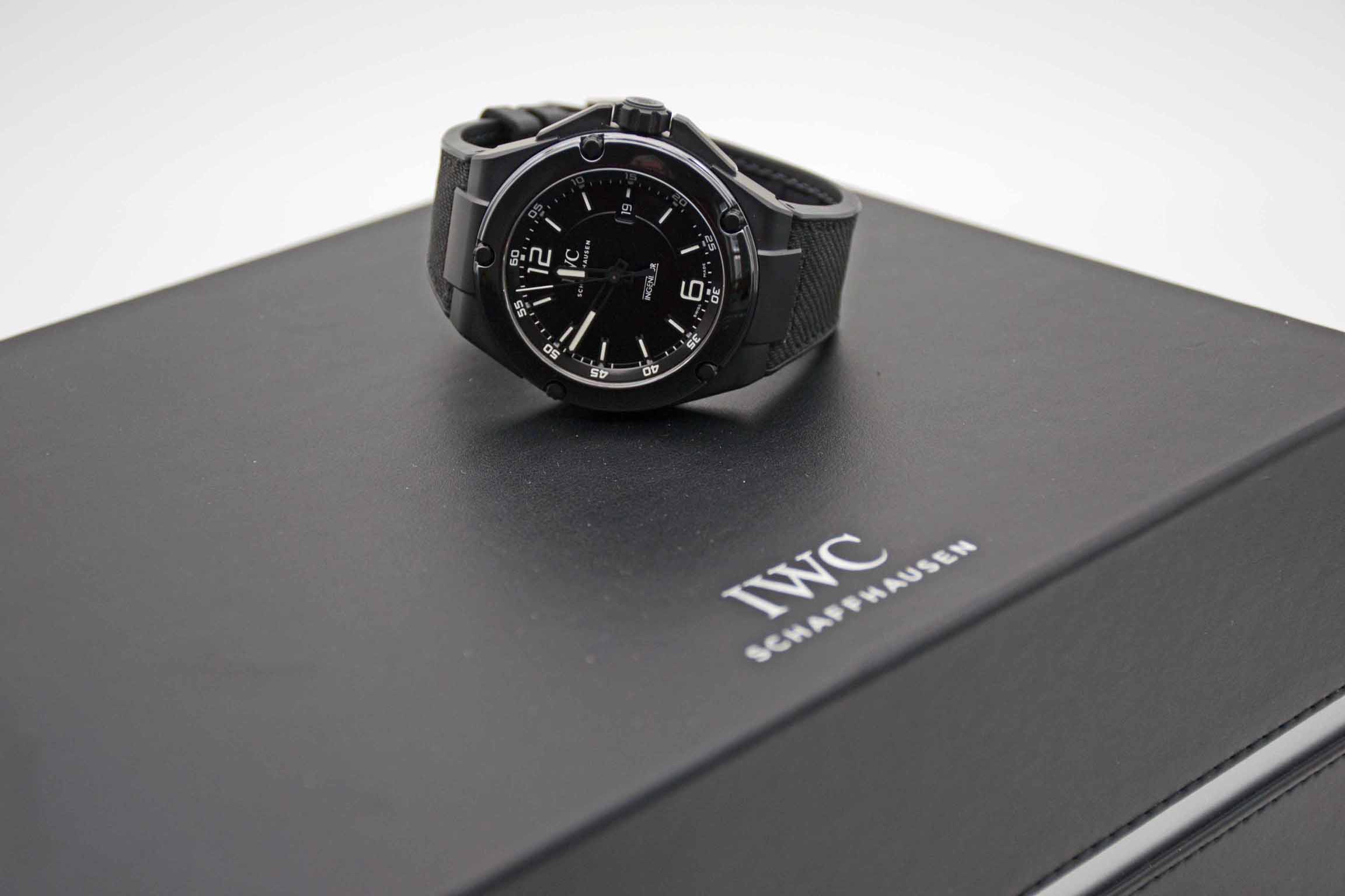 Ingenieur AMG Black Series IW322503, schwarzes 46 mm Keramik Gehäuse mit neuwertigem IWC Amydfaser Armband und IWC Titanschließe. Toller Racer in IWC Lederbox mit Umkarton, Ingnieur Bedienungsanleitung und IWC Service Rechnung. Die Uhr ist absolut neuwertig und befindet sich in perfektem Zustand ohne jegliche Beschädigungen. Inzahlungnahmen sind möglich. Bitte sprechen Sie uns hierzu an. Zu unserer Sicherheit lagern wir sämtliche Uhren unseres Bestandes extern im Banksafe, daher bitten wir um vorherige Terminvereinbarung.