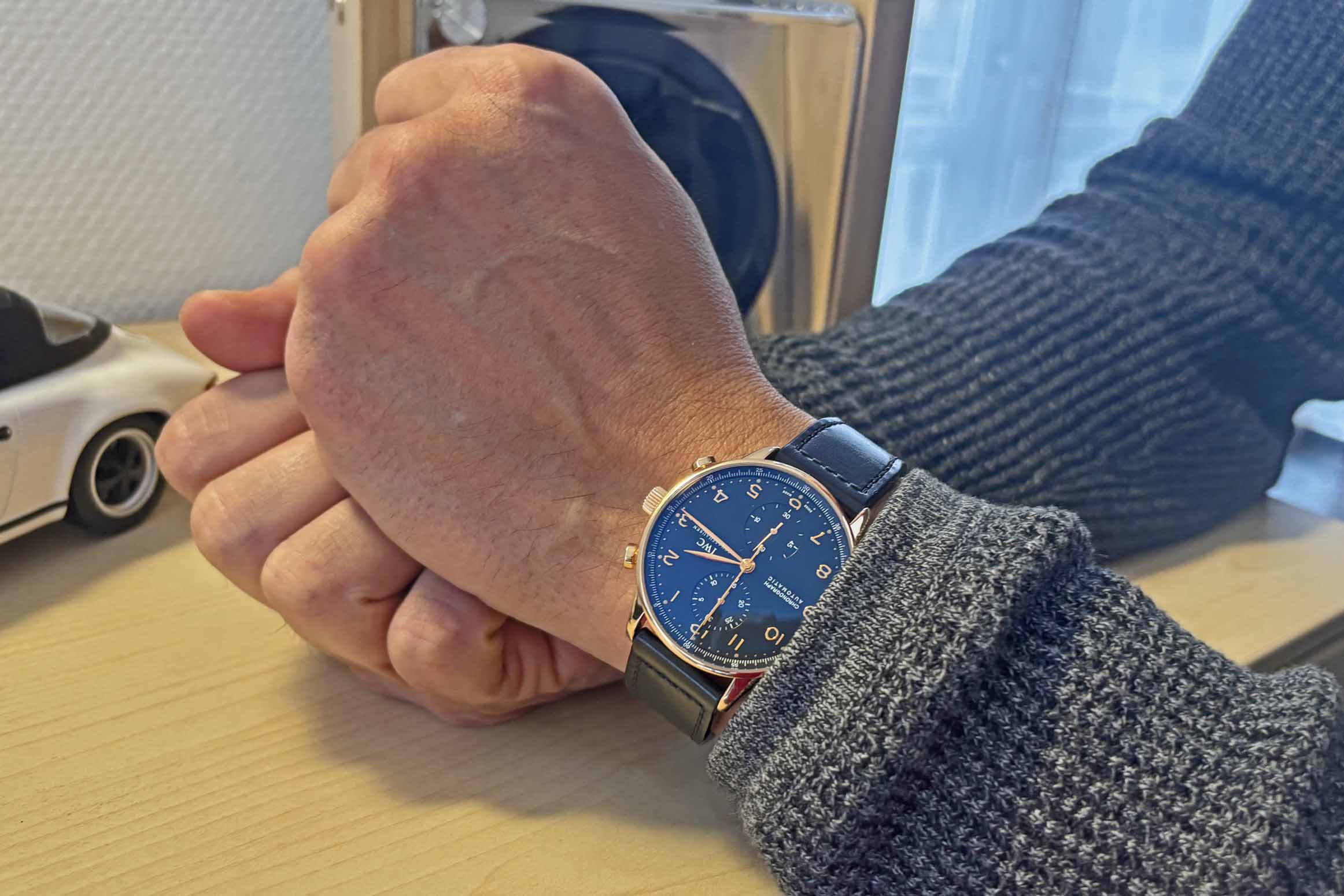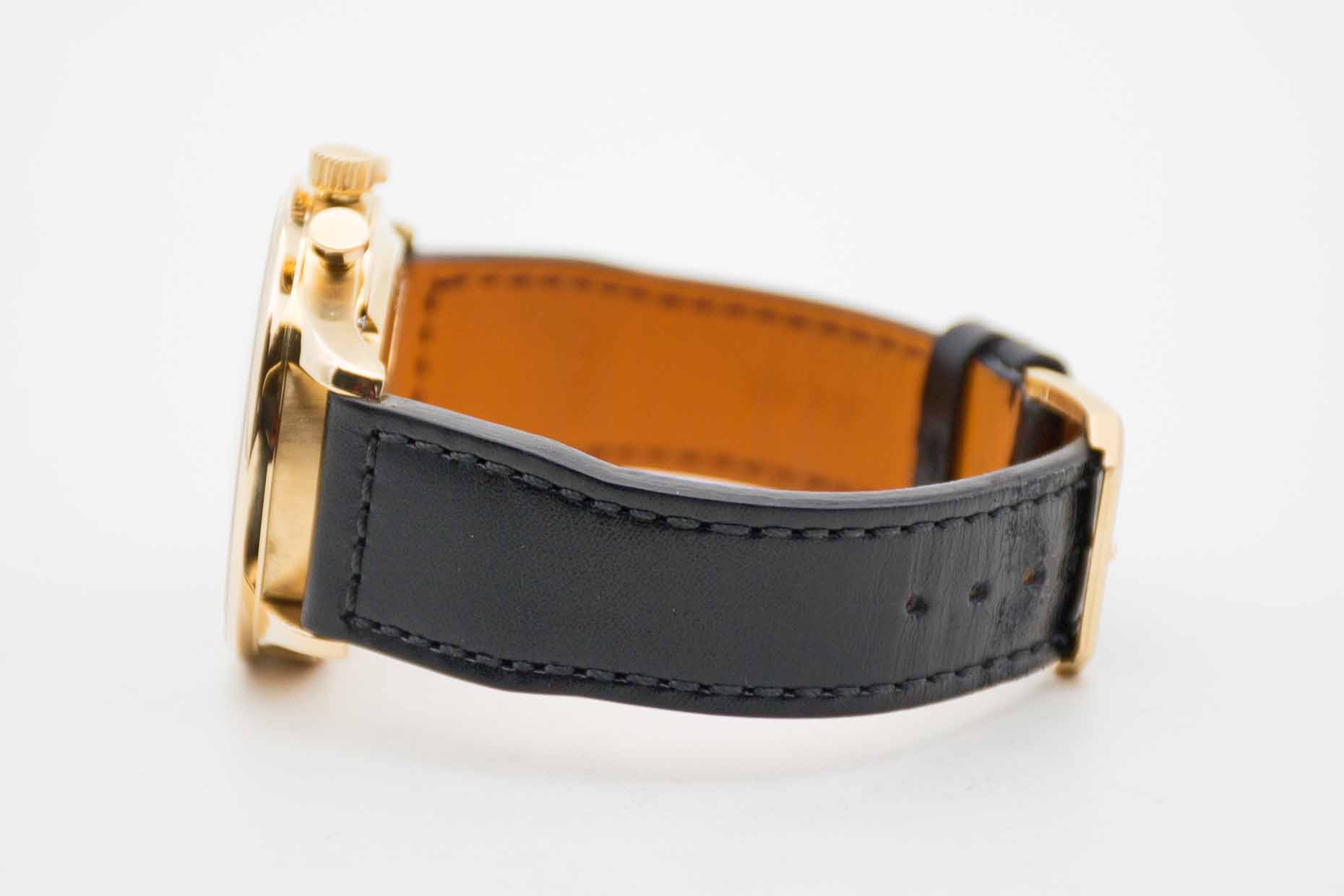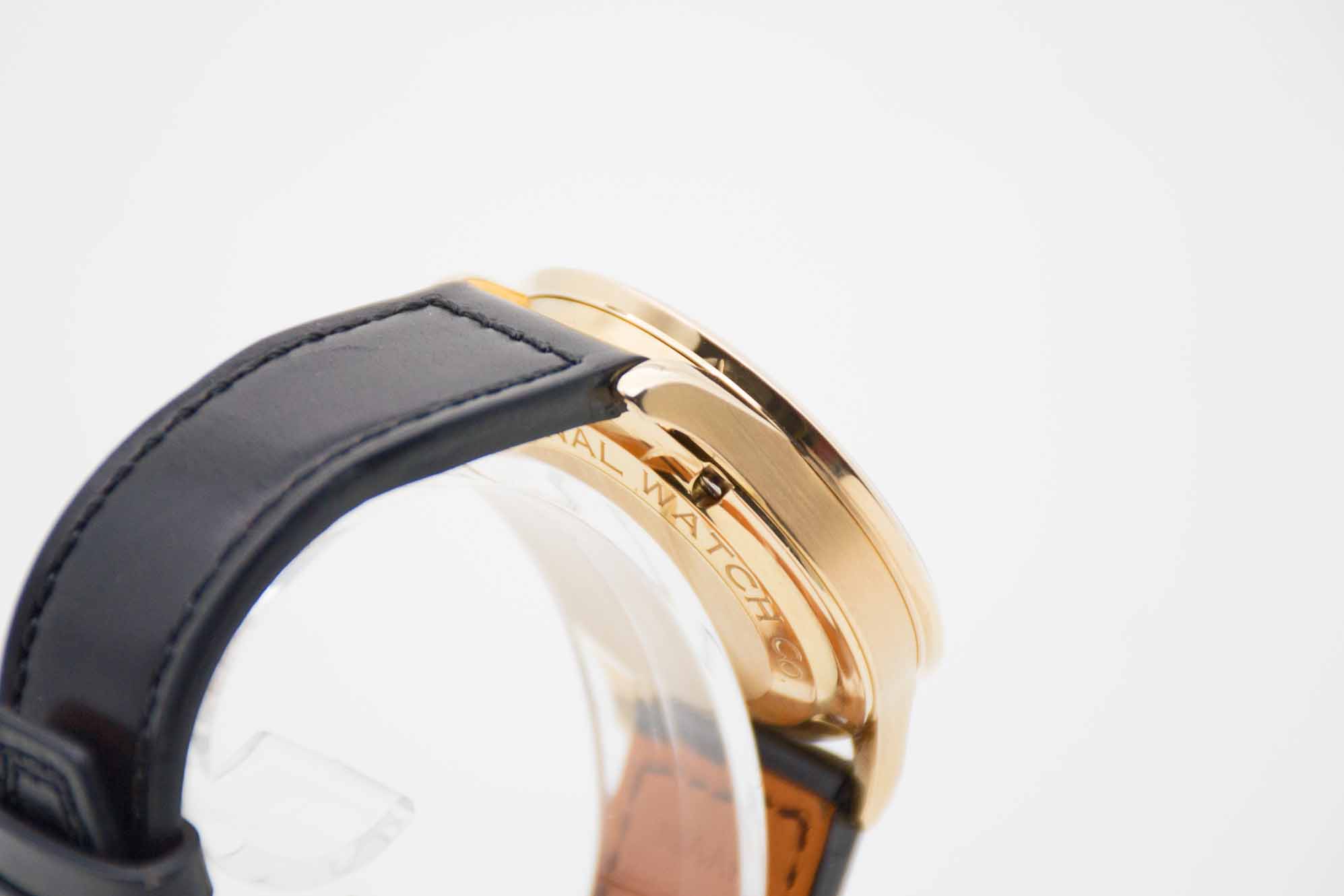 Portugieser Chronograph IW3714-02, 41 mm 18 kt Roségold Gehäuse mit schwarzem Zifferblatt und schwarzem IWC/Santoni Lederarmband mit IWC 18 kt Roségold Dornschließe. Sehr gepflegte Dressuhr in IWC Box mit sauberem Inlay (Oberflache mit Lager/Alterungsspuren), IWC Garantie Booklet, Portugieser Bedienunganleitung, IWC/Santoni Booklet und IWC Garantiekarte aus 2003 (deutsche Erstauslieferung). Die Uhr stammt aus 1. Hand und befindet sich in perfektem und sehr gepflegtem Zustand. Gerne nehmen wir Ihre hochwertige Armbanduhr in Anzahlung.