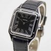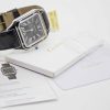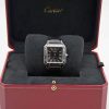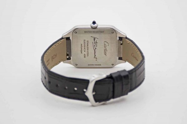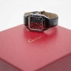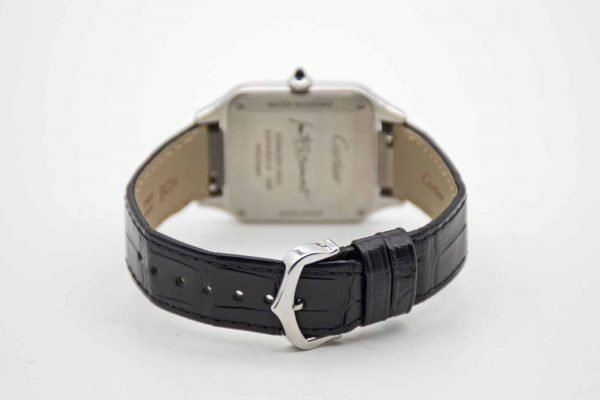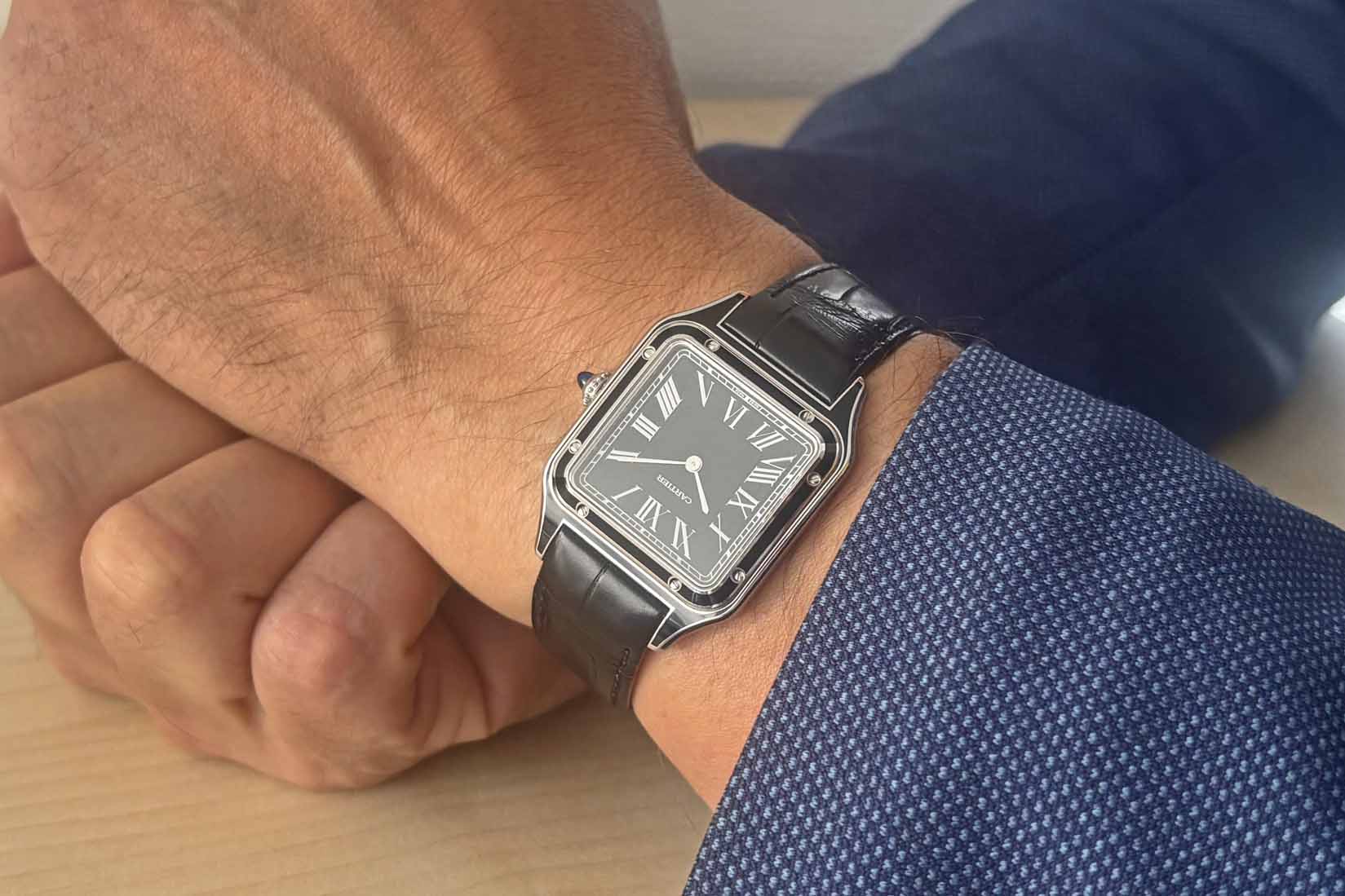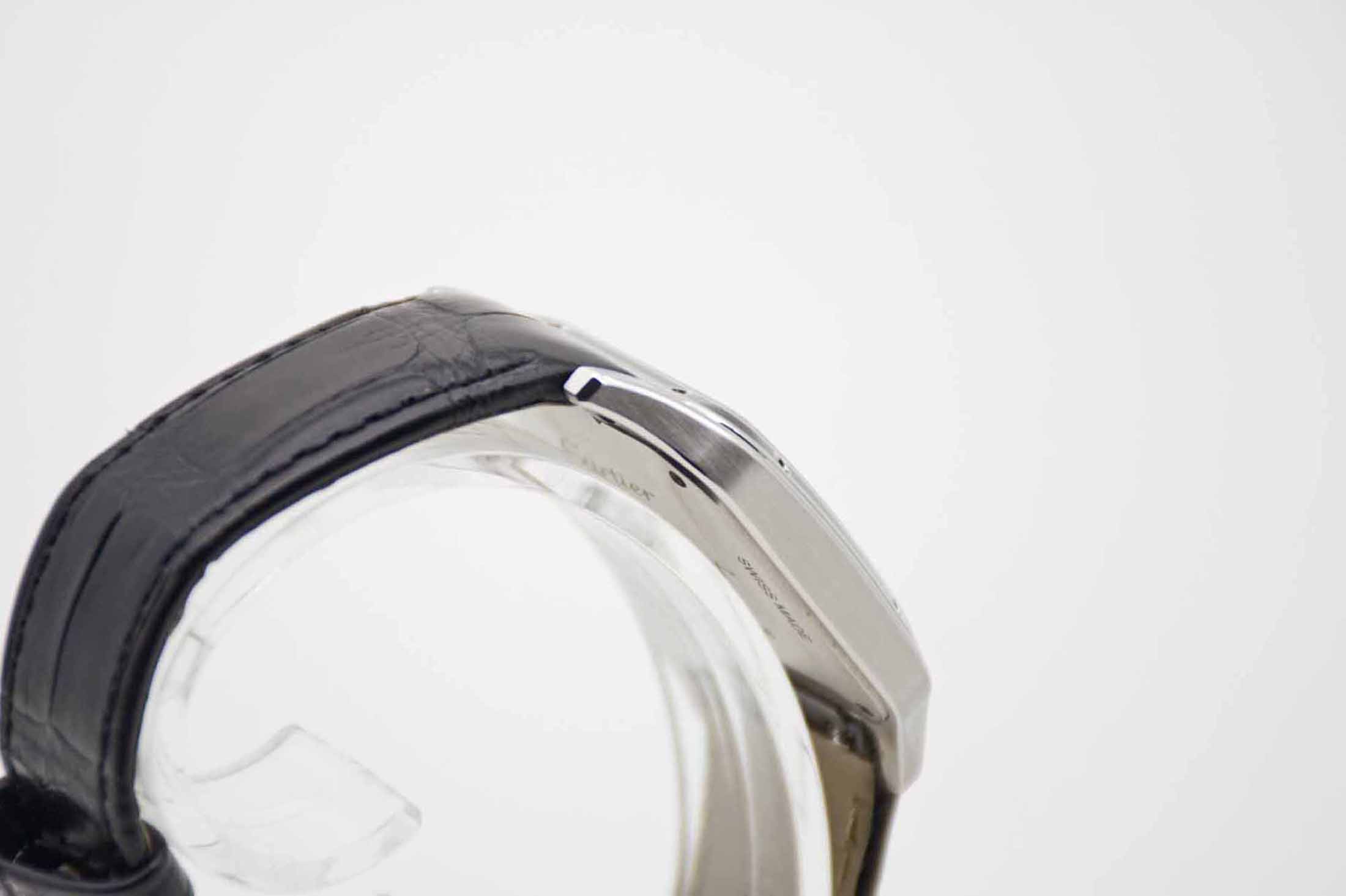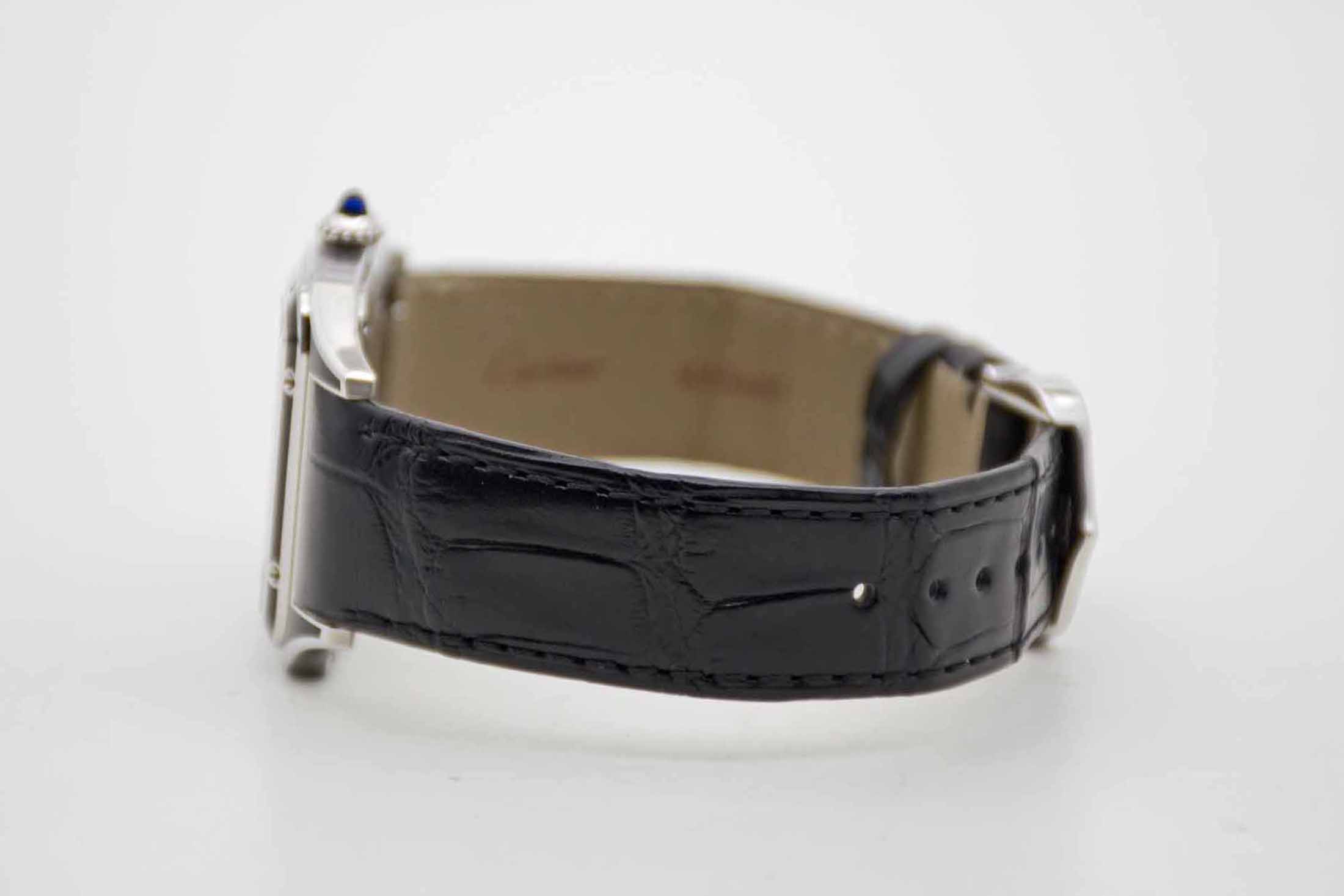 Santos Dumont Black Lacquer WSSA0046, Tank Solo XL 5200026, 43,5 x 31,5 mm case with black roman Lacquer dial and black Cartier alligator strap with Cartier buckle. Full set in red Cartier inner and outer box with manual/service booklet, bezel protector, Cartier extended warranty until 2031 and original Cartier warranty card from 2023. The watch comes in perfect and mint condition like new from the first owner.