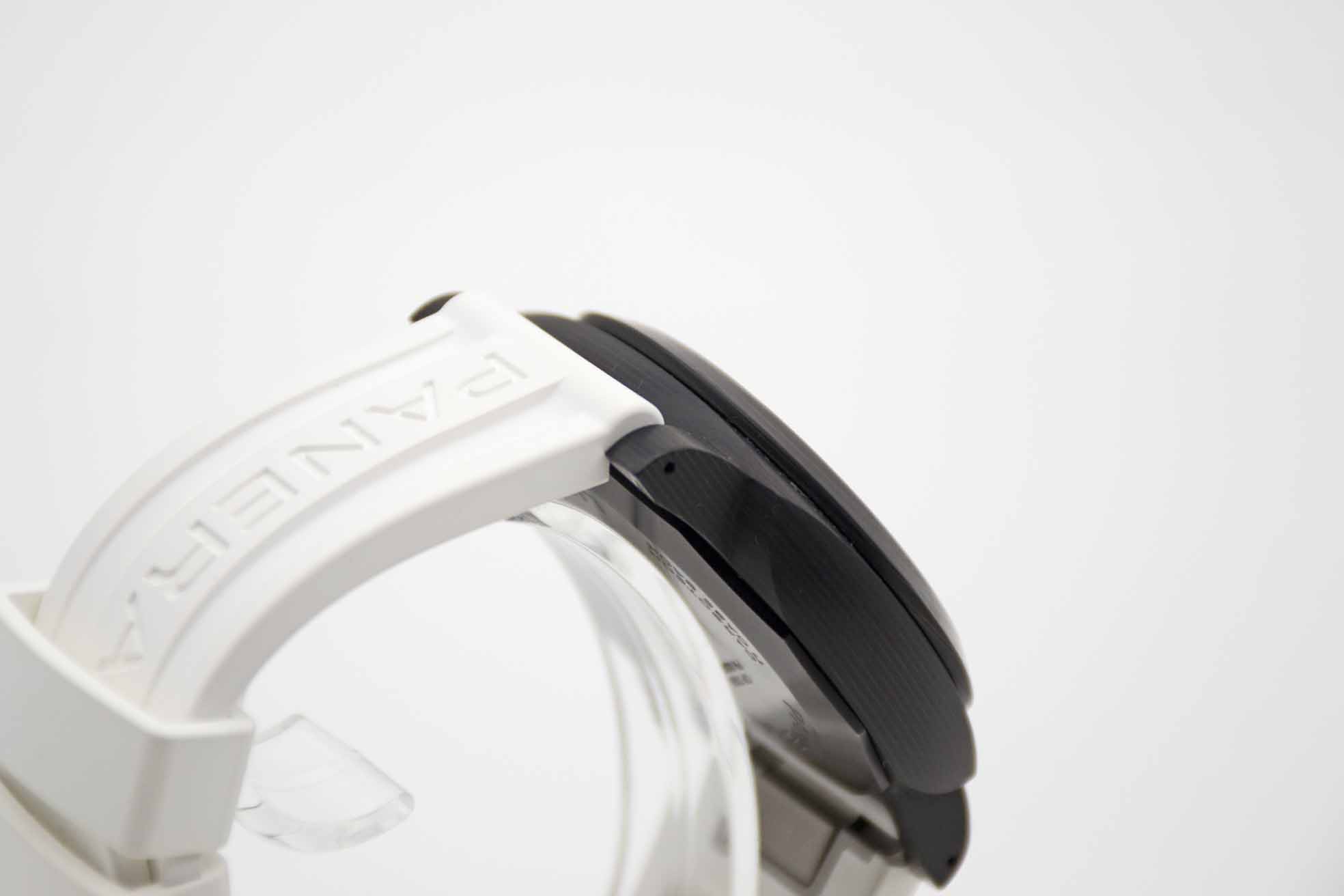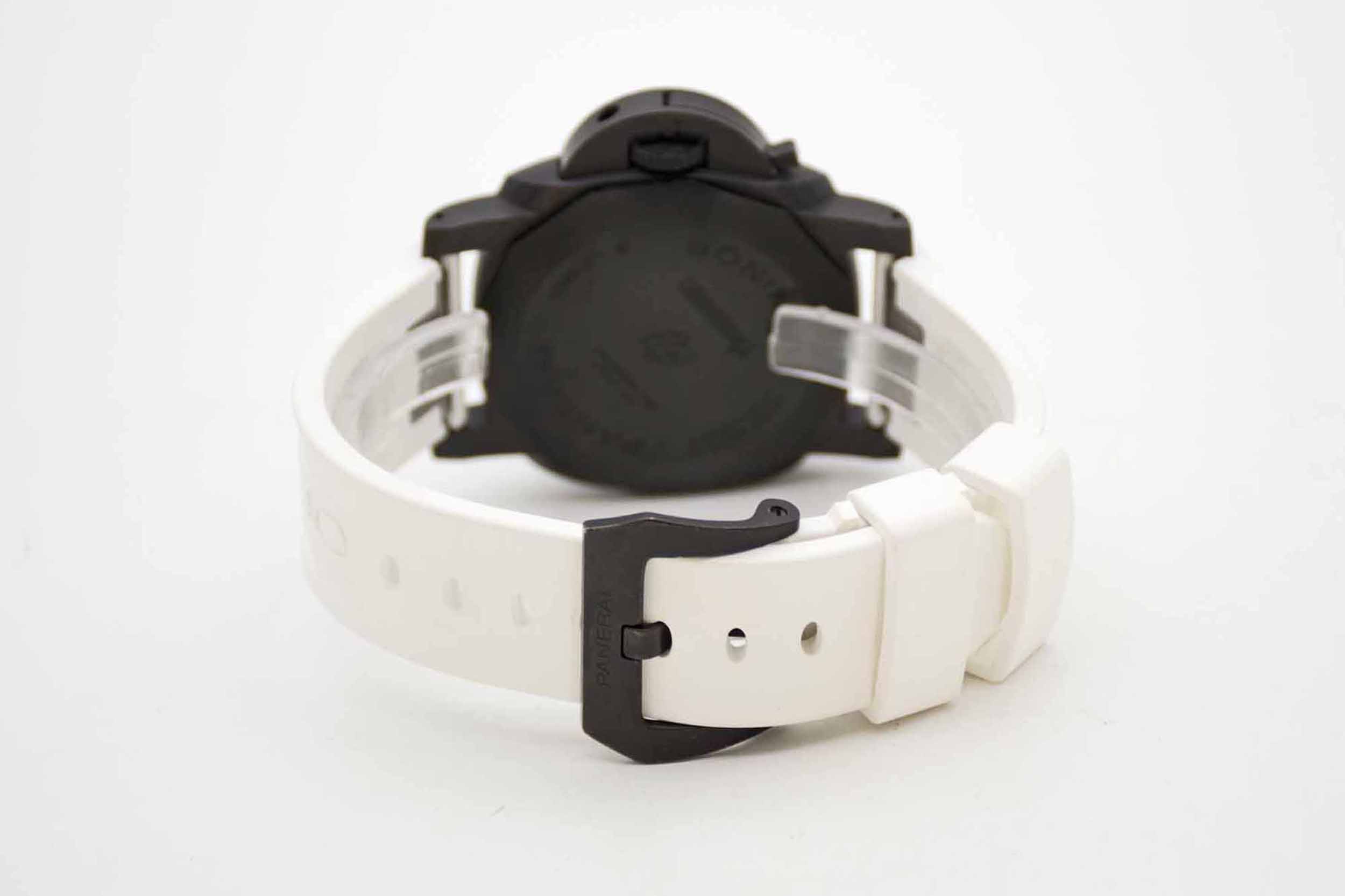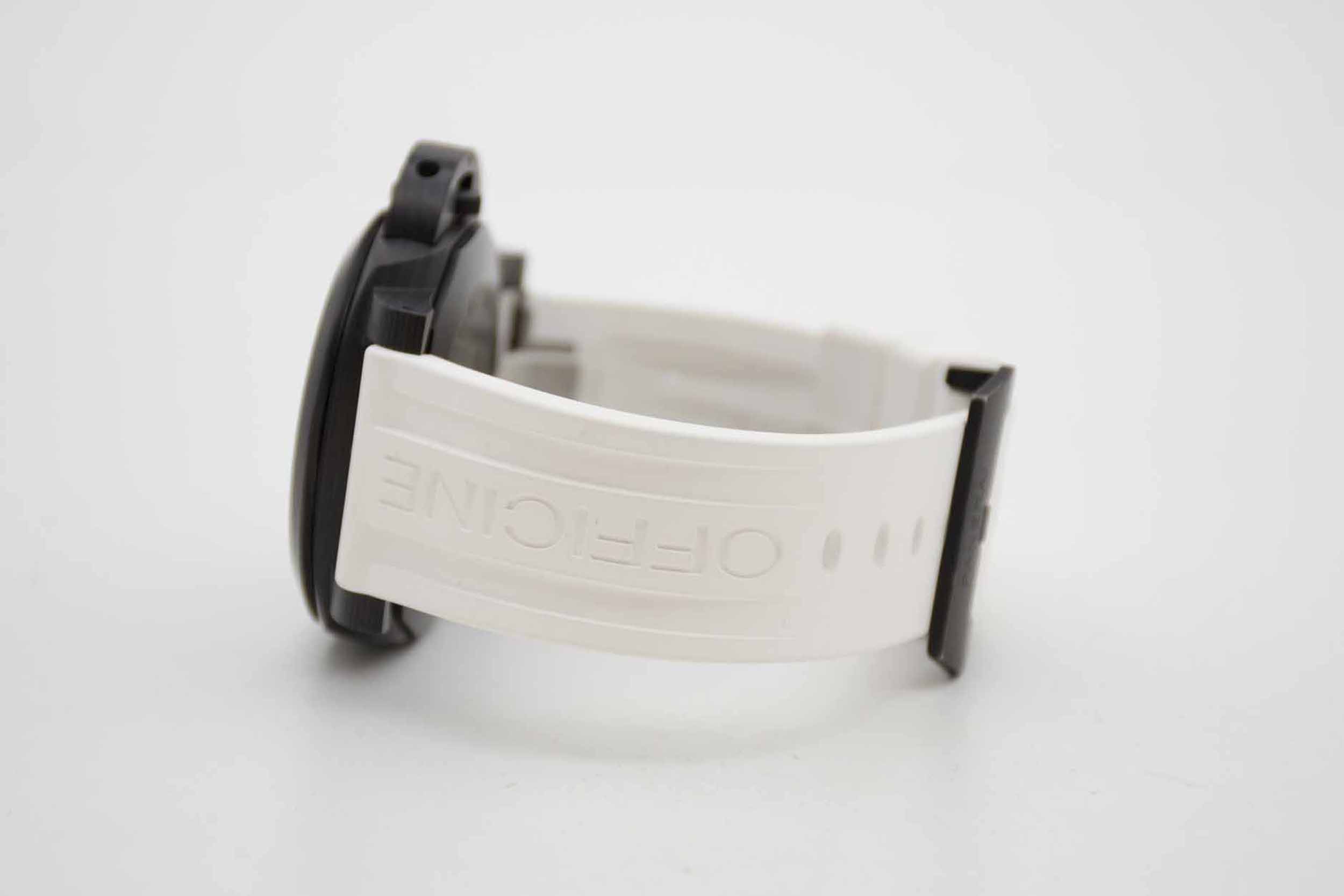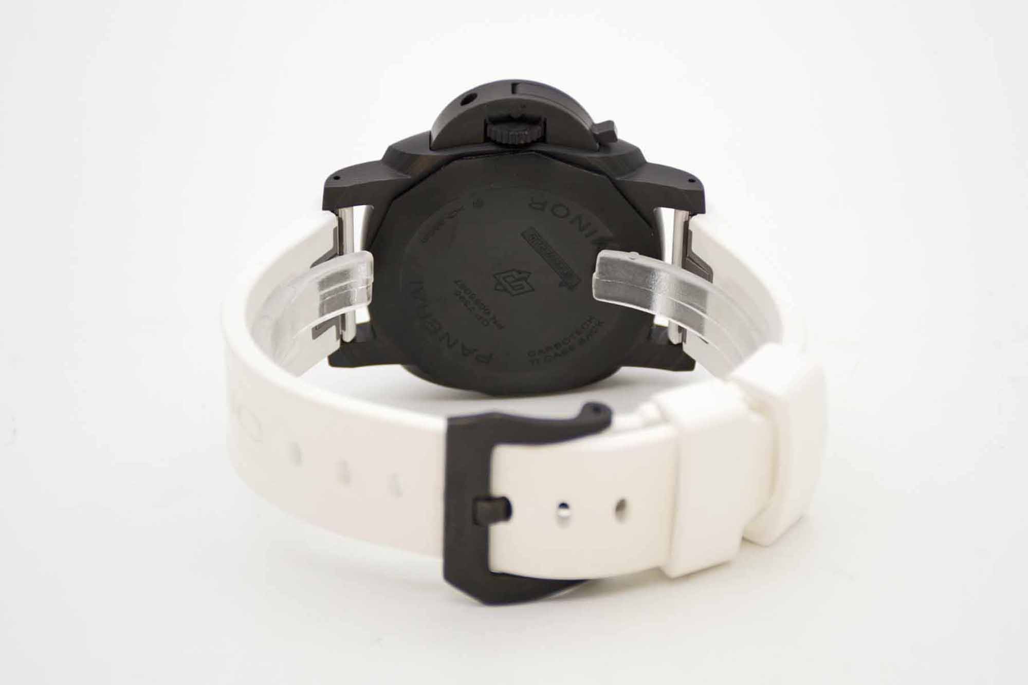 Luminor Marina Carbotech PAM001661, 44 mm Carbon Gehäuse mit schwarzem Sandwich Zifferblatt und weißem Panerai PAM-Click Kautschuk Armband mit schwarzer Panerai Dornschließe. Perfekte Carbotch in Panerai Box mit Umkarton, Gebrauchsanweisung/Garantiebooklet, gebrauchtem Panerai Nylon Armband, Schraubenzieher, Panerai Garantieverlängerung bis 2028 und Panerai Garantiekarte aus 2020. Sehr leichter Diver in perfektem Zustand. Inzahlungnahmen sind nur im Direktgeschäft möglich. Zu unserer Sicherheit lagern wir sämtliche Uhren unseres Bestandes extern im Banksafe, daher bitten wir um vorherige Terminvereinbarung.