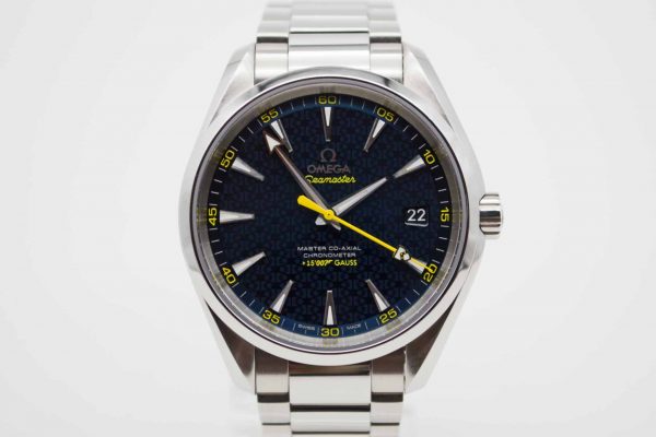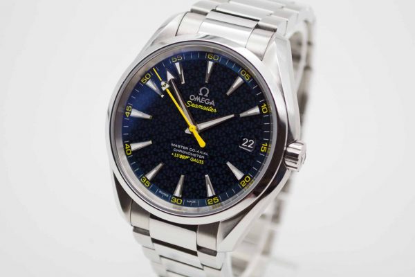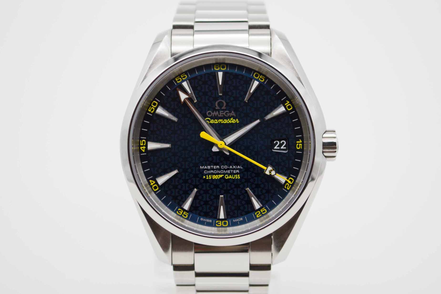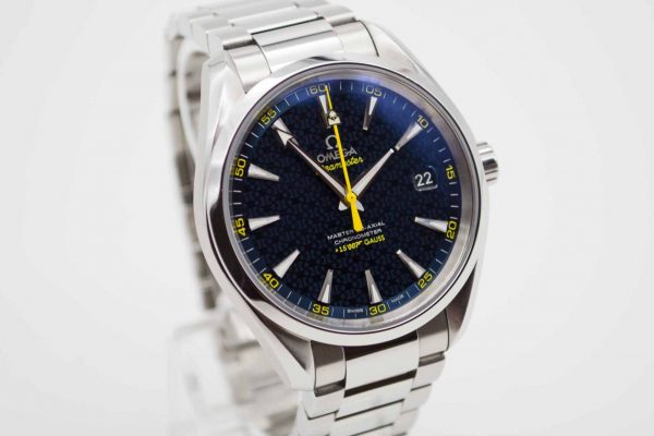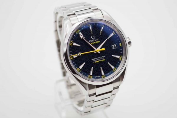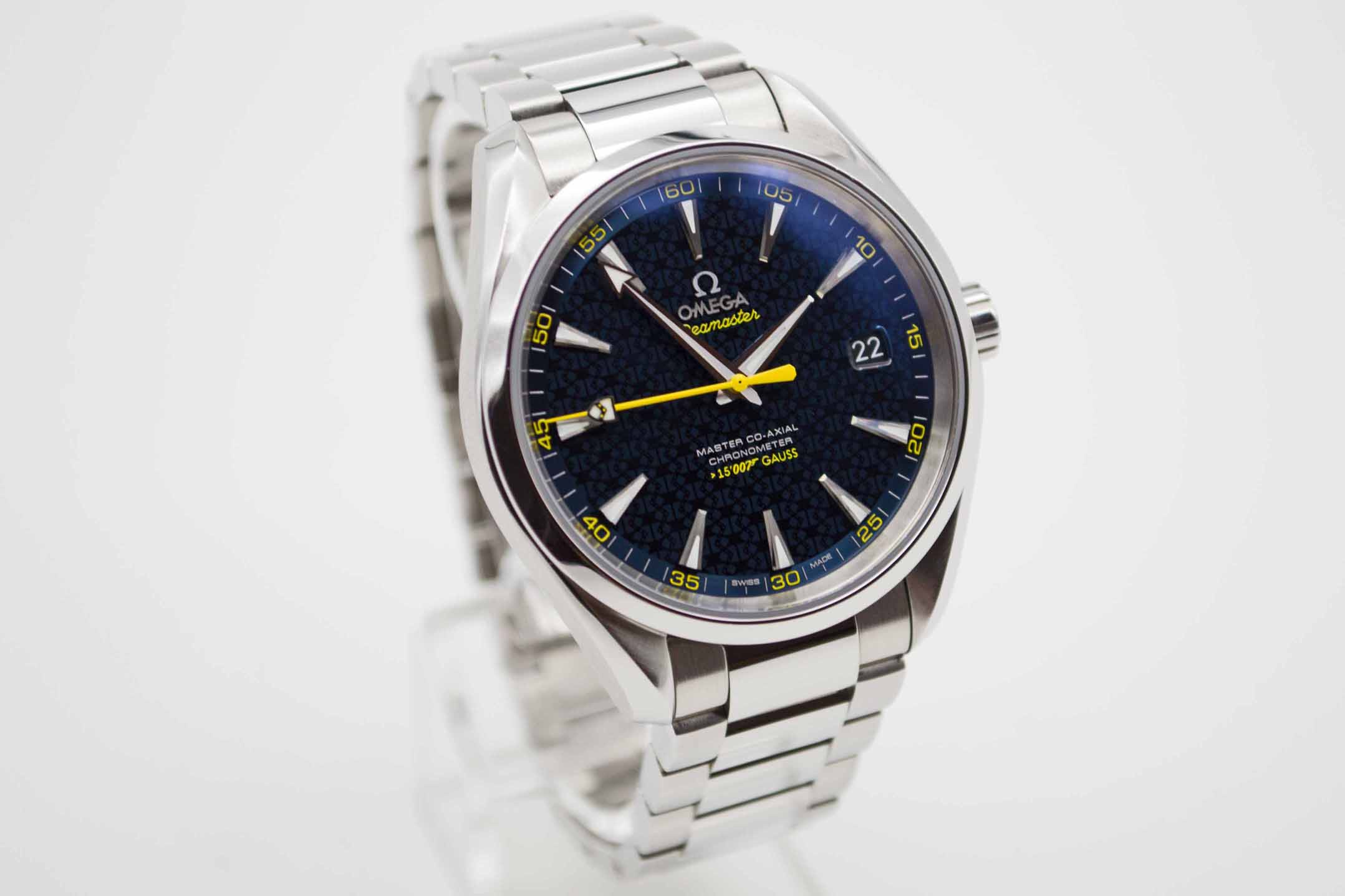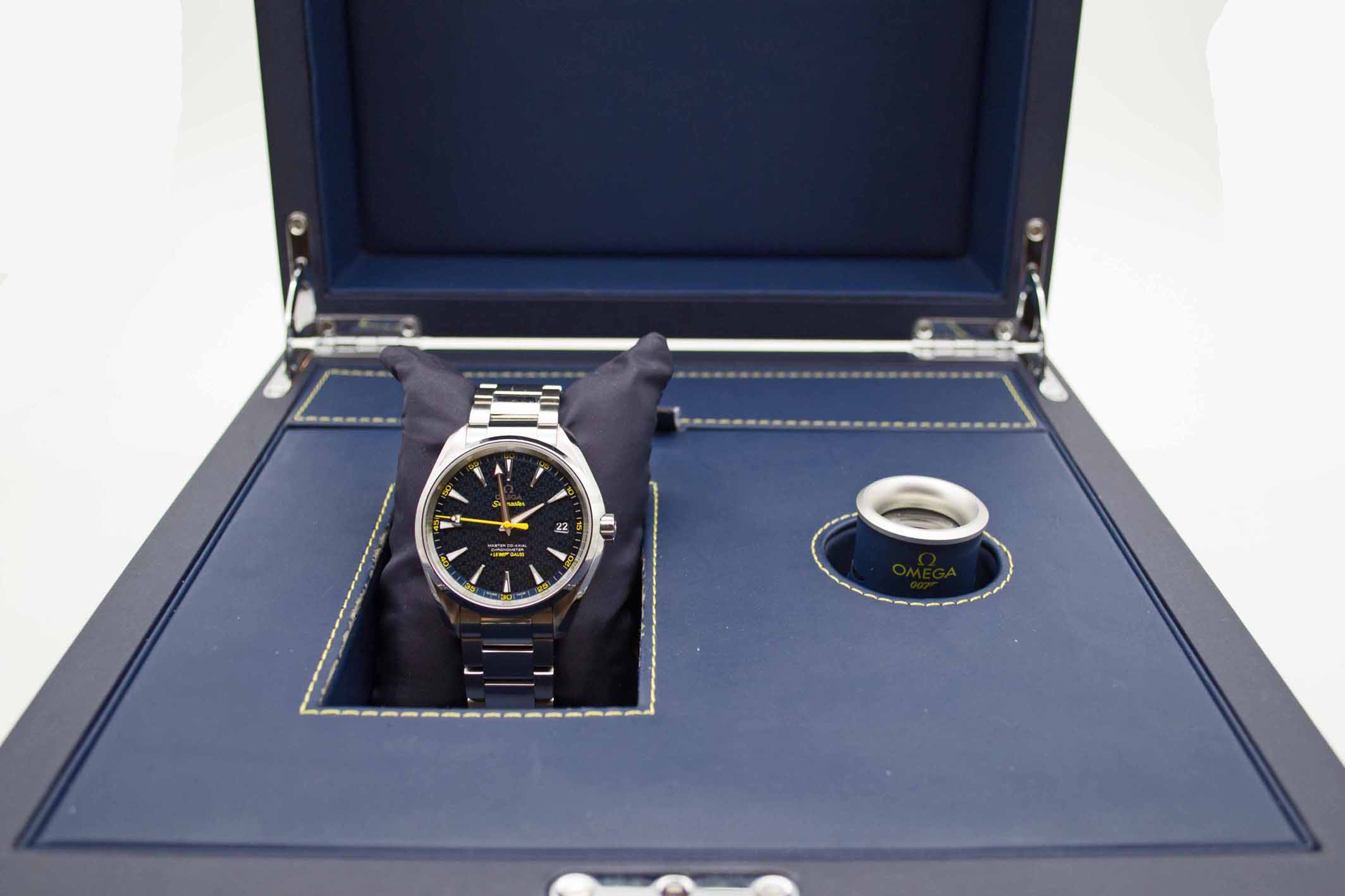 Seamaster Aqua Terra Edition James Bond Spectre 231.104.22.103.004, 41,5 mm Gehäuse mit blauem Zifferblatt mit gelben Akzenten sowie Omega Edelstahlarmband in voller Länge. Schöner Diver in blauer Omega Spectre Box mit blauem Lederetui, Pictogram Karte, blauem Omega Nylon Armband mit gelber Naht mit Omega Faltschließe und passenden Federstegen, Anleitung zum Bandwechsel und Omega Garantiekarte aus 2021. Die Uhr befindet sich sehr gepflegtem Zustand. Inzahlungnahmen sind nur im Geschäft möglich. Zu unserer Sicherheit lagern wir sämtliche Uhren unseres Bestandes extern im Banksafe, daher bitten wir um vorherige Terminvereinbarung.