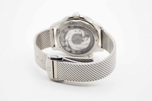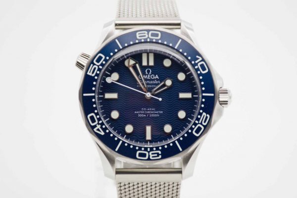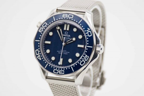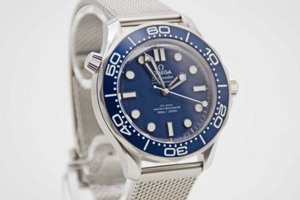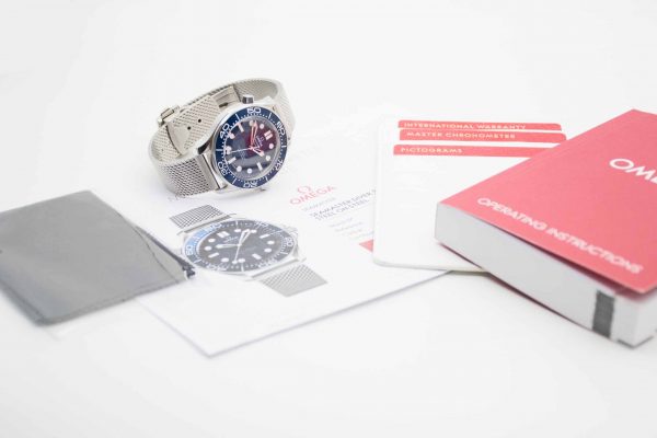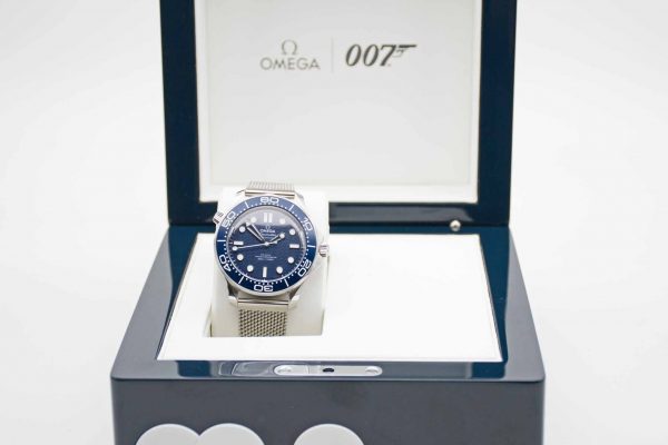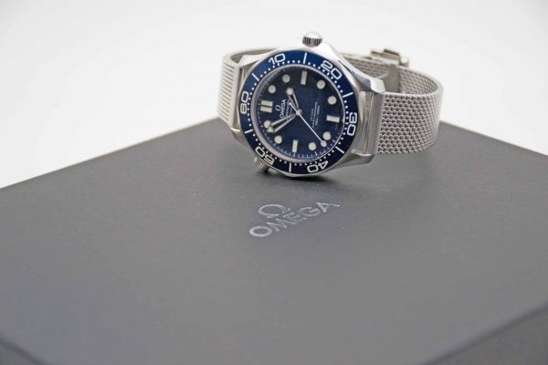 Seamaster Diver 300M James Bond 60th Anniversary 210.30.42.20.03.002, 42 mm Gehäuse mit blauem Zifferblatt und Lünette sowie Omega Edelstahl Mesh Armband mit Faltschließe. Sehr bequemer und komfortabler Diver in blauer Omega 007 Edelholzbox mit Umkarton, Lederetui, Omega Putztuch, Pictogram Karte, Master Chronometer Karte, C.O.S.C Gangzertifikat und Omega Garantiekarte aus 2024. Die Uhr ist neu und ungetragen und stammt aus Sammlerhand. Inzahlungnahmen sind nur im Geschäft möglich. Zu unserer Sicherheit lagern wir sämtliche Uhren unseres Bestandes extern im Banksafe, daher bitten wir um vorherige Terminvereinbarung.