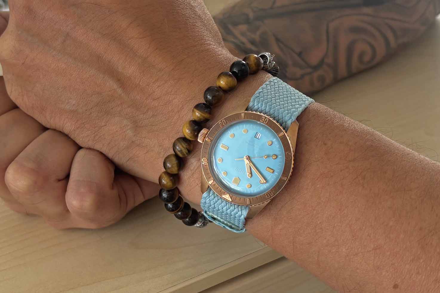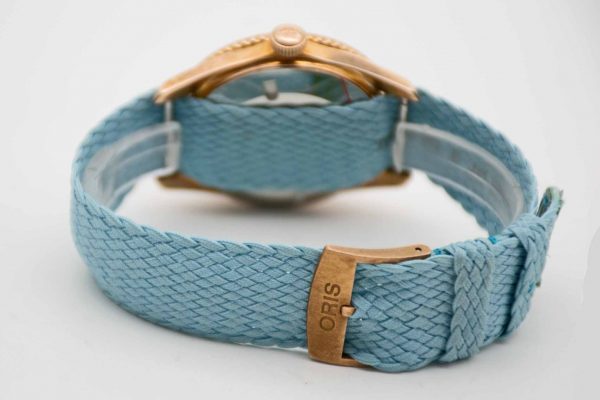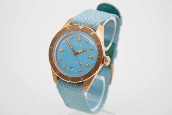 Divers Sixty Five Cotton Candy 733 7771 3155-07 3 19, 38 mm Bronze Gehäuse mit Tiffany grünem Zifferblatt und passendem Textilband mit Oris Dornschließe. Fullset in Oris Box mit Umkarton und Schuber, Bedienungsanleitung, Garantieverlängerung bis 2028, Preisschild und Garantiekarte aus 2025 (deutsche Auslieferung). Die Uhr befindet sich in perfektem und absolutem Neuzustand.
